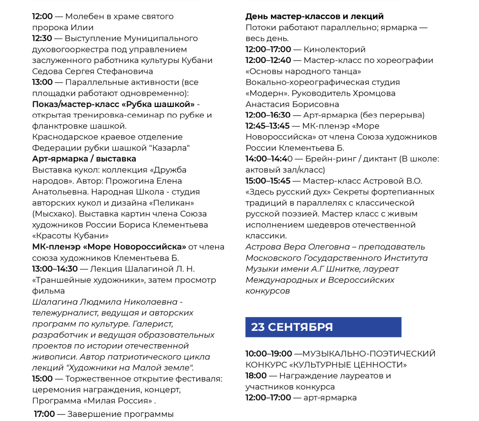 Представляем вам афишу Фестиваля национальных и культурных традиций народов России, который пройдёт с 21 по 24 сентября 2025 года в городе-герое Новороссийске.