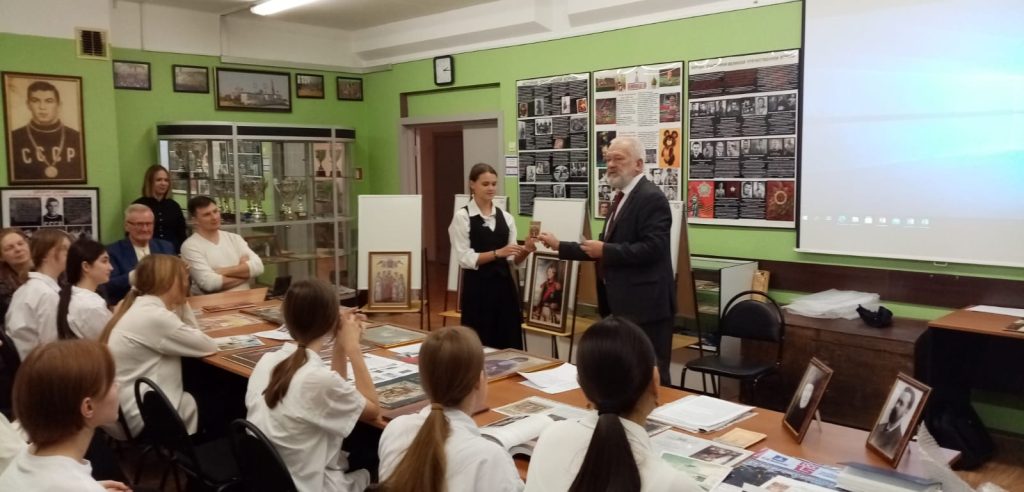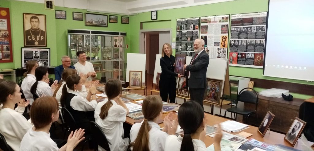 Вторым важным мероприятием, проведённым 21 октября 2025 года, стал выезд в московскую школу № 2010 имени Героя Советского Союза М.П. Судакова (где создан и действует музей Краснодарского края) членов Землячества Ю.Ф. Азарова, Г.П. Барышникова, Л.И. Медниковой, а также А.А. Соловьёва – педагога, историка, человека, глубоко погружённого в искусство иконописи, заместителя руководителя творческого Союза кубанских иконописцев имени князя Е.Н. Трубецкого.