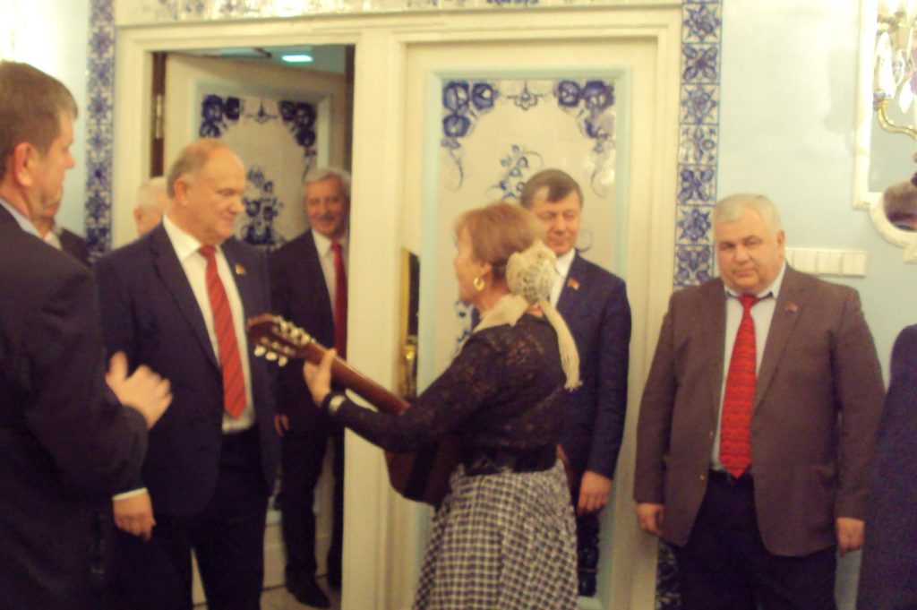 В Государственной Думе ФС РФ (8 декабря 2017 г.). С.Г. Заградская исполняет старинную казачью песню на Юбилее депутата от Краснодарского края, члена фракции КПРФ.
