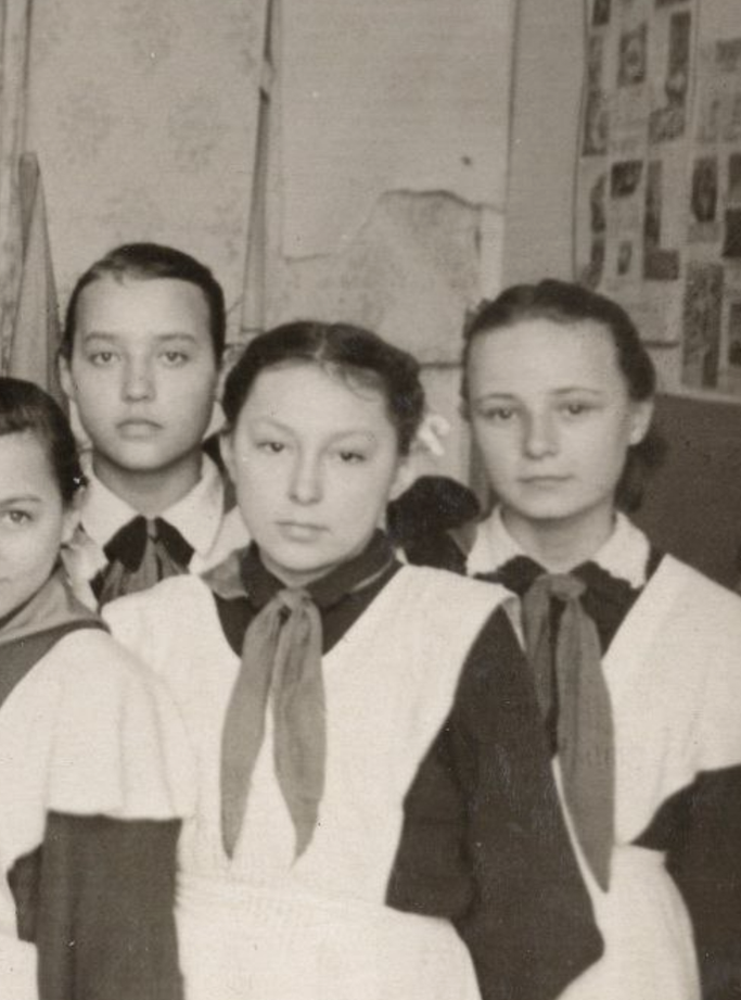 Школьница-пионерка С.Г. Заградская (на фото справа). Станица Шкуринская Кущевского района Краснодарского края. 1958 г.