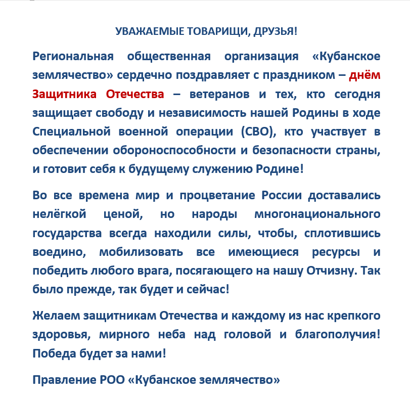 Уважаемые члены РОО «Кубанское землячество»! В...