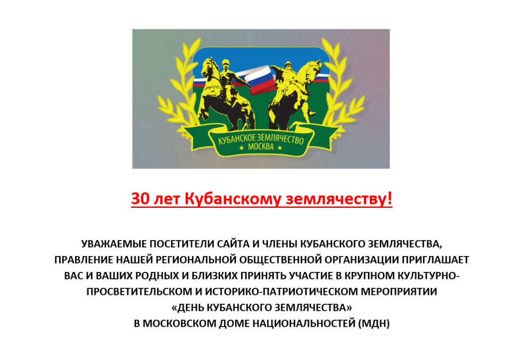 ПРИГЛАШАЕМ НА ДЕНЬ КУБАНСКОГО ЗЕМЛЯЧЕСТВА В МДН
